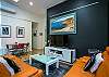 - Separate second lounge area with kitchenette, dining area and giant flat screen TV and DVD player.