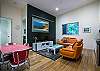 The living area has another large Apple TV with surround sound complimented with Jensen speakers and Denon amp. There is aTelstra TBox.