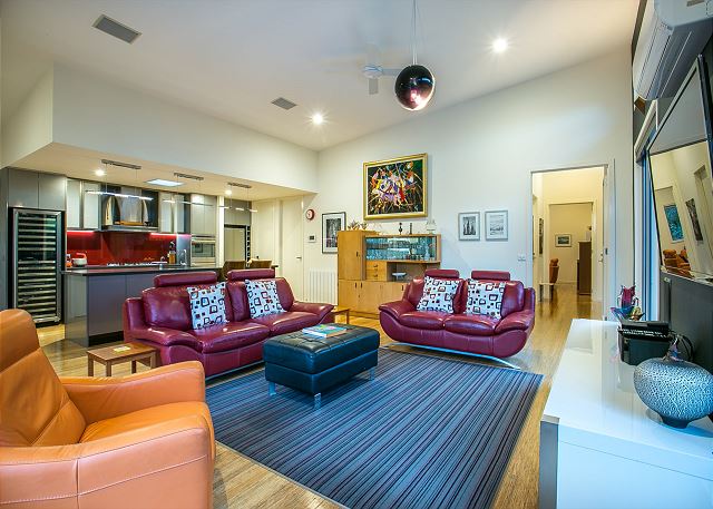Soaring ceilings, polished bamboo flooring, woollen carpets and acoustic soundproofing between all rooms create a contemporary aesthetic and quiet, peaceful ambience.