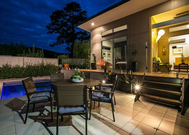 - Extensive outdoor lighting for mood and practicality.
